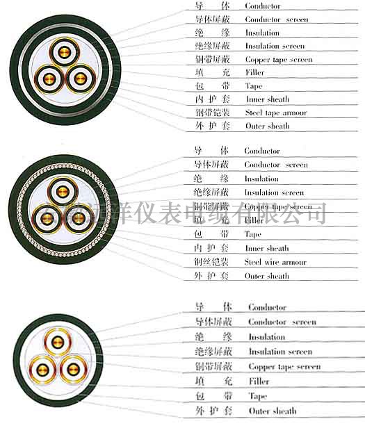 注:我們也可以生產非磁性鋼帶和金屬絲鎧裝電纜